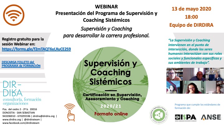 Presentación del Programa de formación en Supervisión y Coaching Sistémicos en una webinar a cargo del equipo de DIRDIRA.